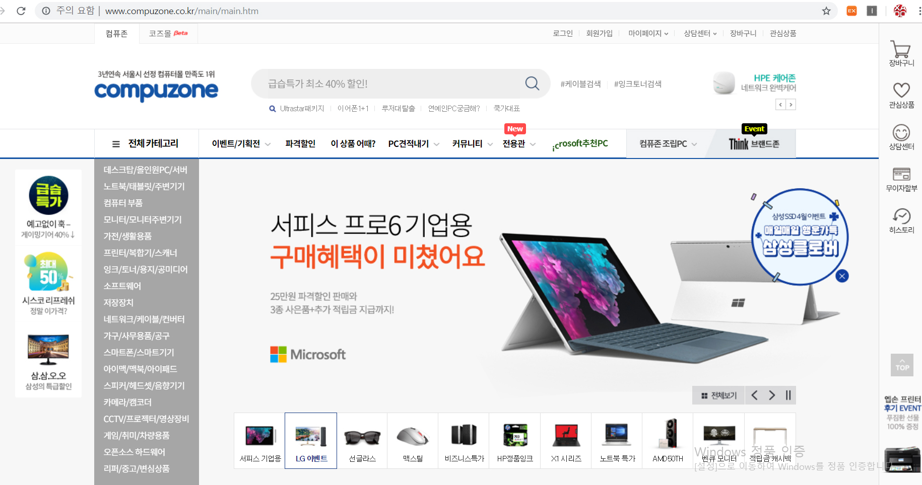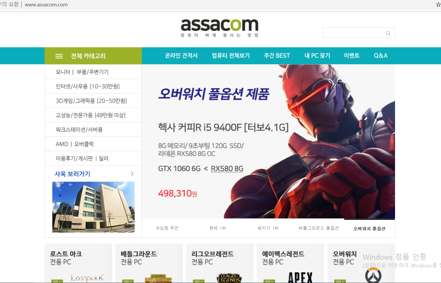 * 사이트 인터페이스는 구형인듯?하나..메인화면에 필요한 게임용/사무용/전문가 등 큰 카테고리별로 정리가 비교적 잘 되어있다.
