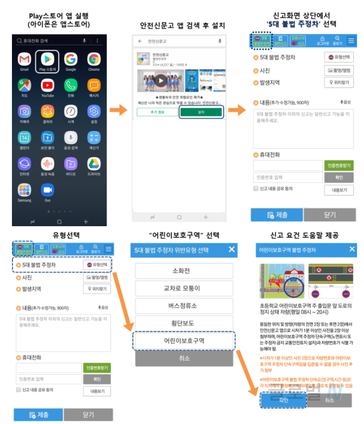 기존의 어린이 보호구역 불법주차에 대한 벌금이 무려 3배가 인상되어 더욱 강하게 처벌한다는 방침입니다. (일반도로에 비해 2배) 8만원 정도였지만, 이에 (일반도로 과태료 기준) 3배를 인상한다고 하니 엄청 강하게 단속한다는 방침입니다. 아울러, 어린이 구역 불법주차에 대한 주민 신고제를 강화하고 이는 1분 간격으로 2장의 사진을 찍어 안전신문고 앱으로 신고하면 바로 과태료가 부과됩니다.