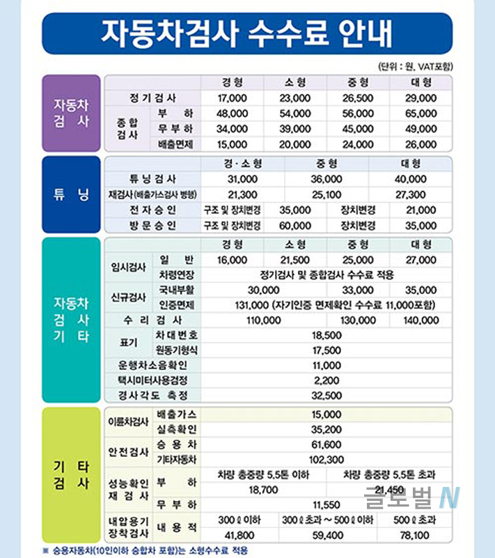 자동차 검사는 정기검사와 종합검사로 나누어지며, 검사는 보통 관능 및 기능검사 / 안전도 검사 / 배출가스 분야 등 다양하게 나뉘게 됩니다.일반 출/퇴근용으로 주행하는 차량은 크게 문제가 없지만, 영업용으로 주행하시는 차량분들은 자동차 검사시즌이 돌아오면 은근한 스트레스가 생기기 마련입니다. 왜냐하면..자동차 검사의 불합격이란 수리비 지출로 연결되기 때문입니다.